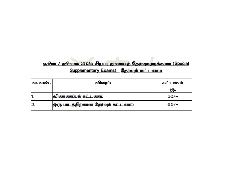 The Government of Tamilnadu has given a chance for the Final Year Students to clear their Arrears through a SPECIAL SUPPLEMENTARY EXAMINATION announced by the Govt. of Tamilnadu to continue their higher education or to go for the job thinking of the economical background of the students. Hence, the students kindly visit the link https://dte.tn.gov.in/ to know the details.
