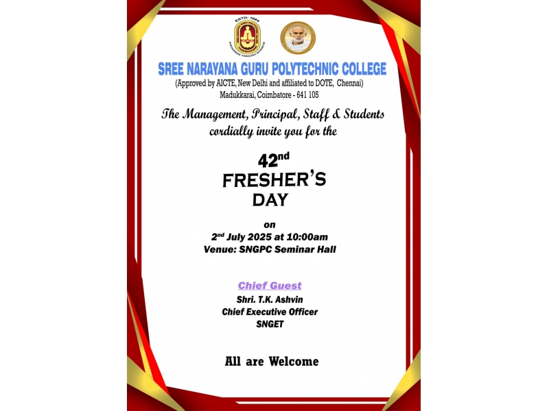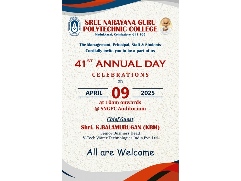 It is a pride movement for SNGPC to Welcome the Alumnus of 1996 Batch EEE Students for a gathering in the campus to celebrate the 25th Year of completion on 22nd June 2024 at 9.00 am in the Seminar Hall. The memories and experience will be shared among each other for a purpose to grow.